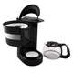 Den medföljande kannan har ett praktiskt lock för att förhindra spill. Både kaffekokaren och kannan är lätta att rengöra för en smidig och trevlig kaffeupplevelse.
