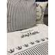 Bäddset i 100% bomullssatin bestående av örngott och påslakan. Mjuka och behagliga påslakan som känns sköna mot hud och ger en extra ”lyx- och hemmakänsla” i husbil och husvagn vart man än befinner sig! Vitt påslakan och örngott med grå linjer. Camping King och Queen är broderat.
