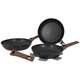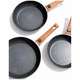 Gimex stekpanna set i 3 delar. Lämplig för induktionshäll. Med robust 3-lagers non-stick beläggning som minskar risken för repor. Avtagbara handtag i stilren träfinish.